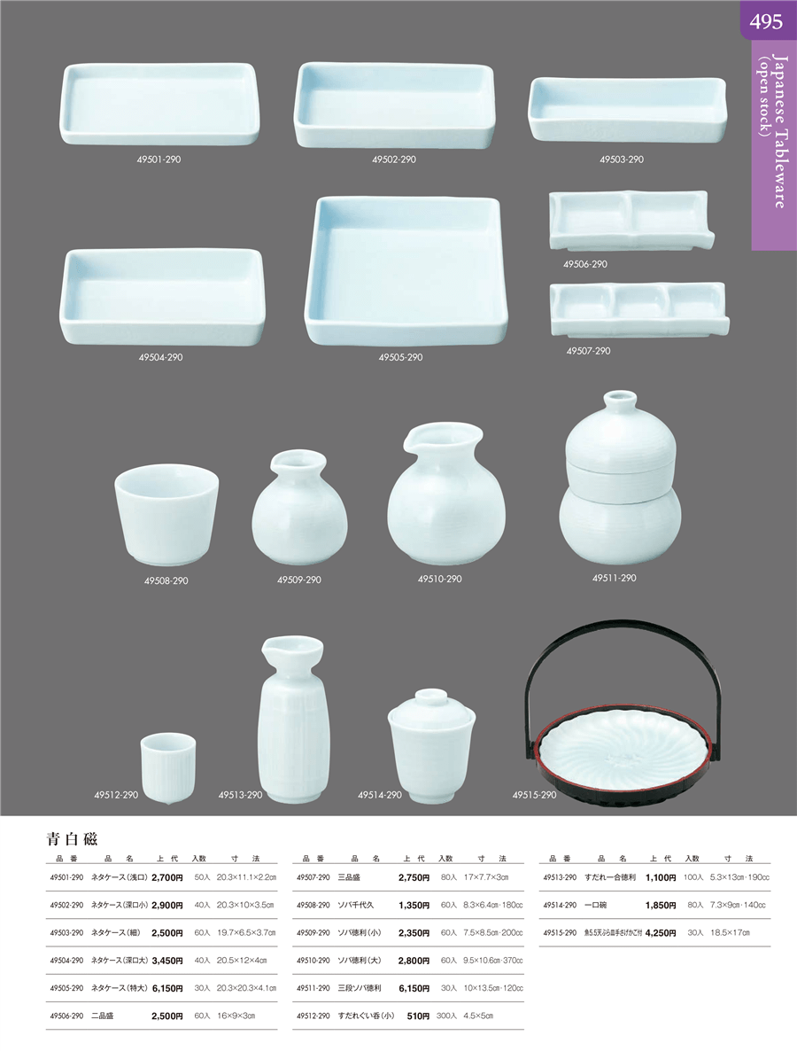 | 49501-290 | 青白磁 ネタケース(浅口) | 上代 2,700円(税抜) 卸値 1,486円(税抜) (45%OFF) | ||