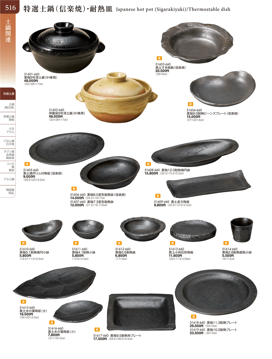 | 51603-660 | 黒土すき焼鍋(信楽焼) | 上代 20,500円(税抜) 卸値 11,276円(税抜) (45%OFF) | ||