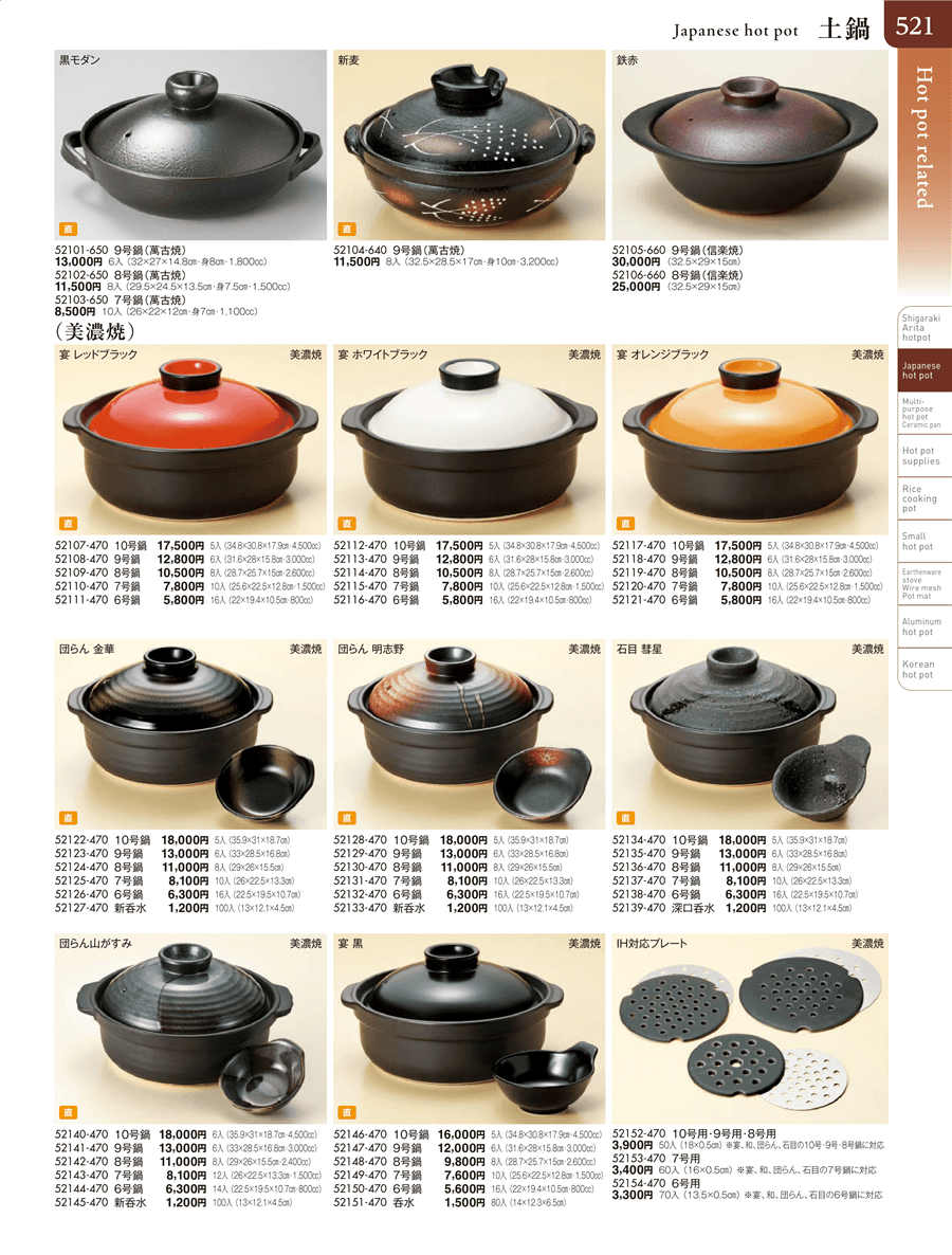 52106-660 | 鉄赤8号鍋(信楽焼) | 上代 25,000円(税抜) 卸値 13,751円(税抜) (45%OFF) | ||