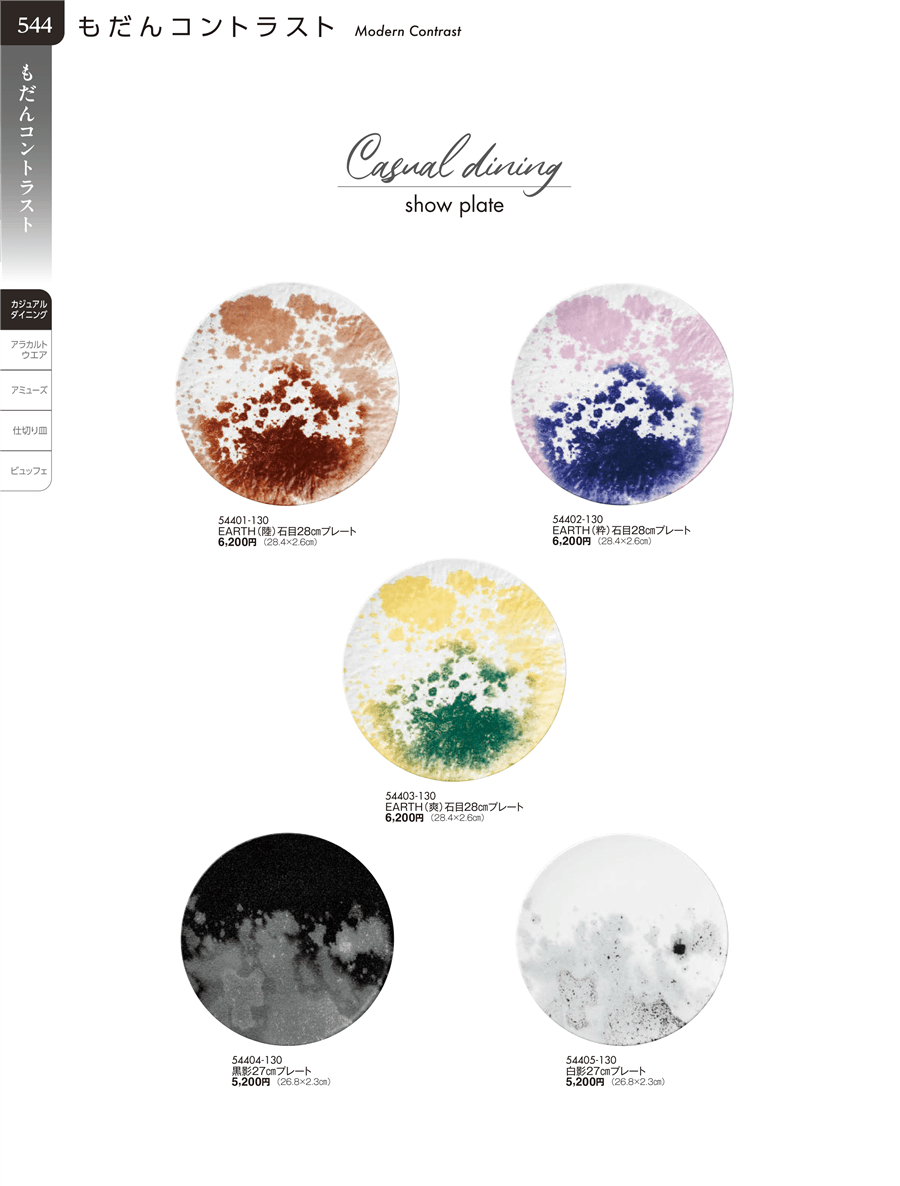 | 54402-130 | EARTH(粋)石目28㎝プレート | 上代 6,200円(税抜) 卸値 3,411円(税抜) (45%OFF) | ||