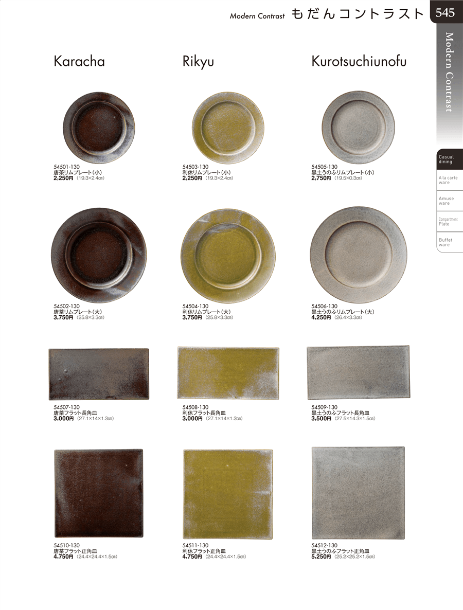 | 54512-130 | 黒土うのふフラット正角皿 | 上代 5,250円(税抜) 卸値 2,888円(税抜) (45%OFF) | ||