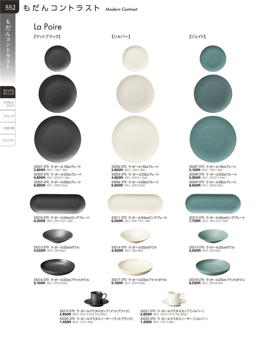 | 55202-270 | ラ・ポール23㎝プレート(マットブラック) | 上代 4,800円(税抜) 卸値 2,640円(税抜) (45%OFF) | ||