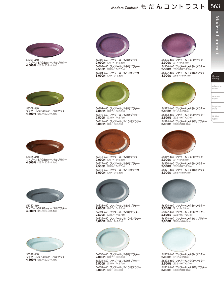 | 56301-460 | ファブールSP28㎝オーバルプラター(パープル) | 上代 4,500円(税抜) 卸値 2,475円(税抜) (45%OFF) | ||