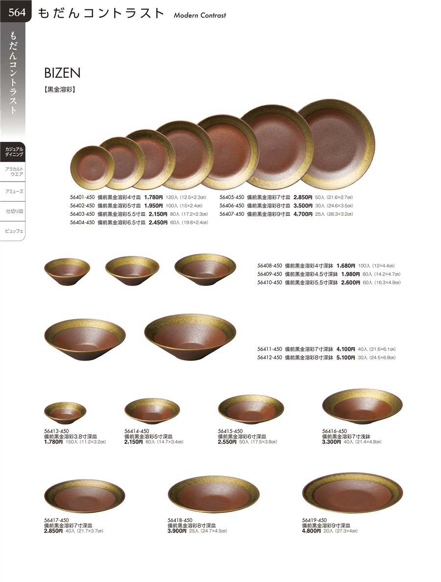 | 56415-450 | 備前黒金溶彩6寸深皿 | 上代 2,550円(税抜) 卸値 1,403円(税抜) (45%OFF) | ||