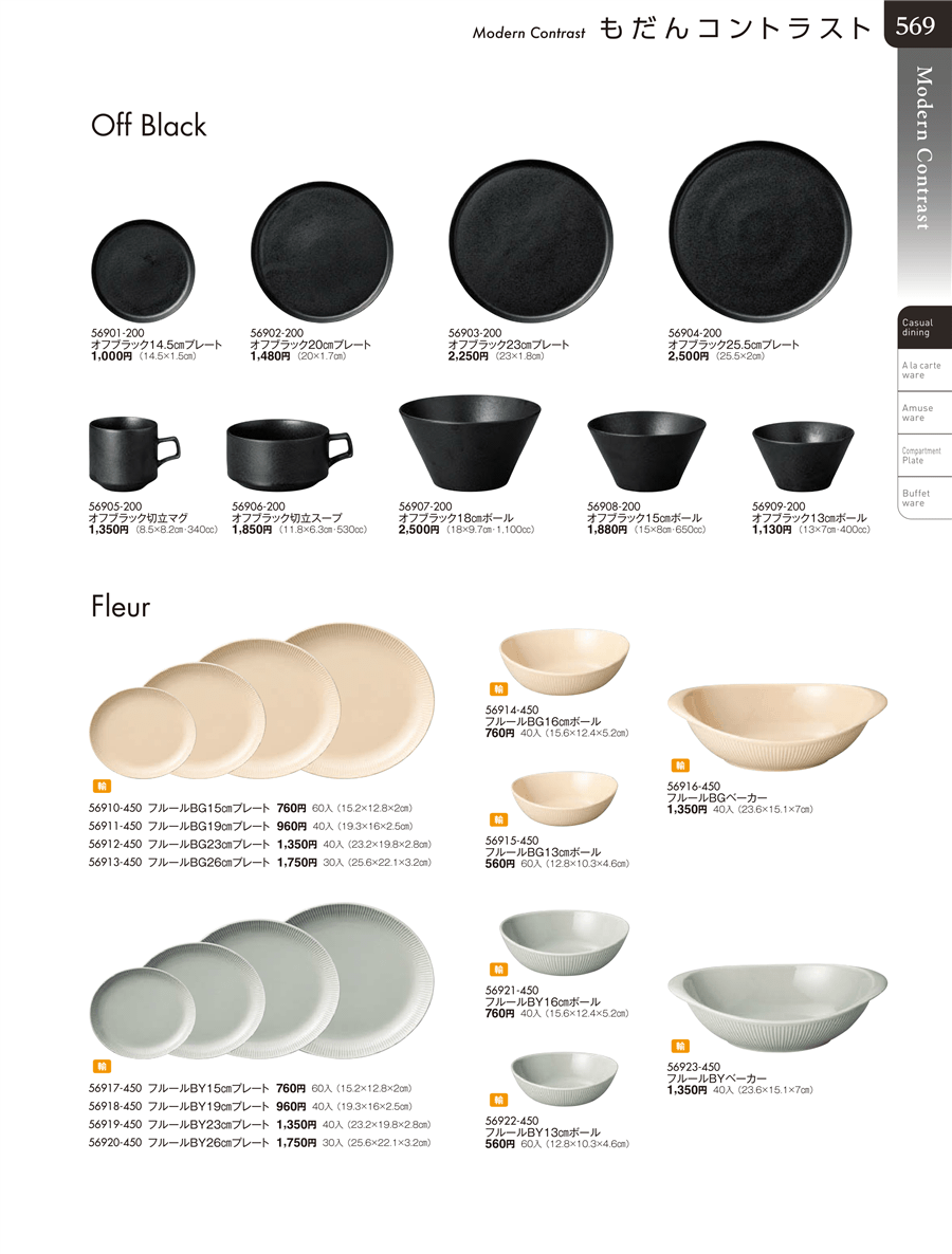 | 56903-200 | オフブラック23㎝プレート | 上代 2,250円(税抜) 卸値 1,238円(税抜) (45%OFF) | ||