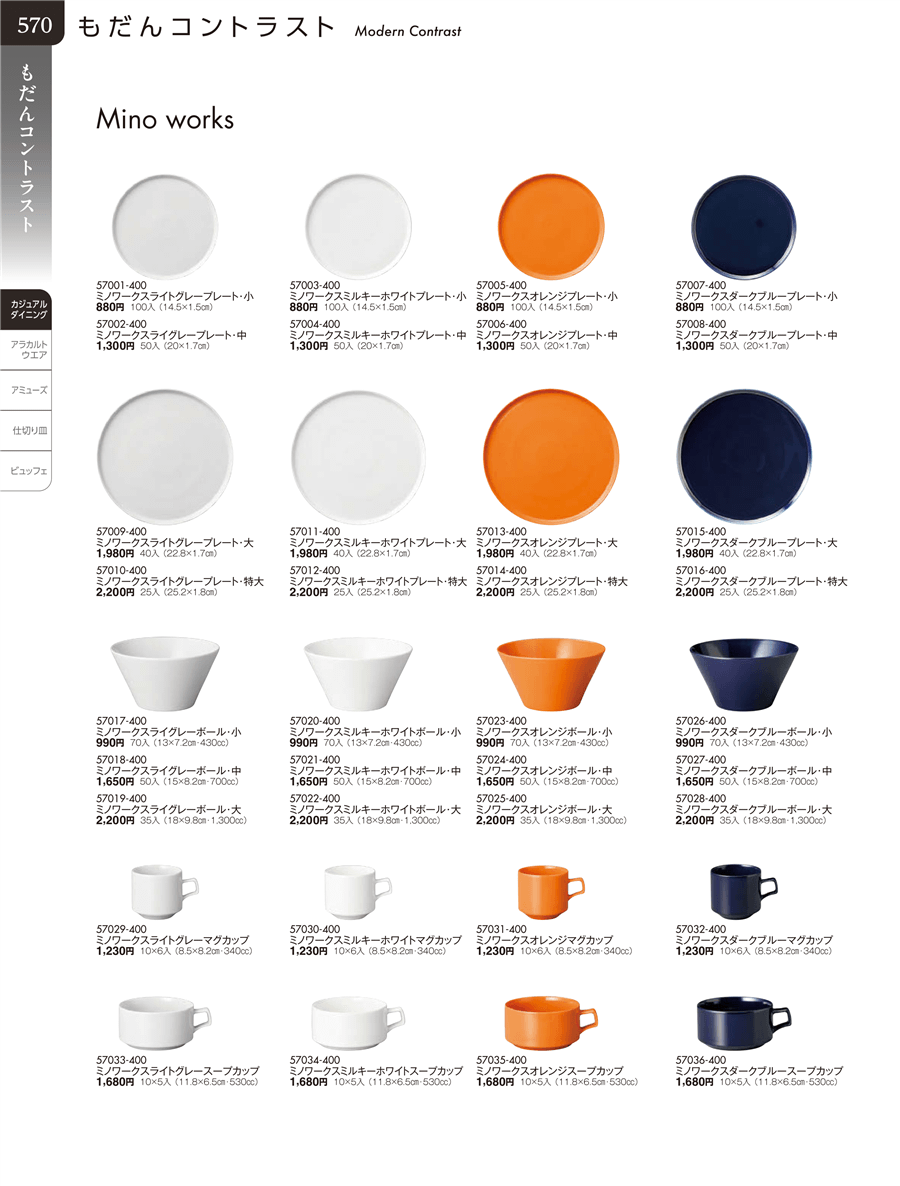 | 57033-400 | ミノワークスライトグレースープカップ | 上代 1,680円(税抜) 卸値 925円(税抜) (45%OFF) | ||