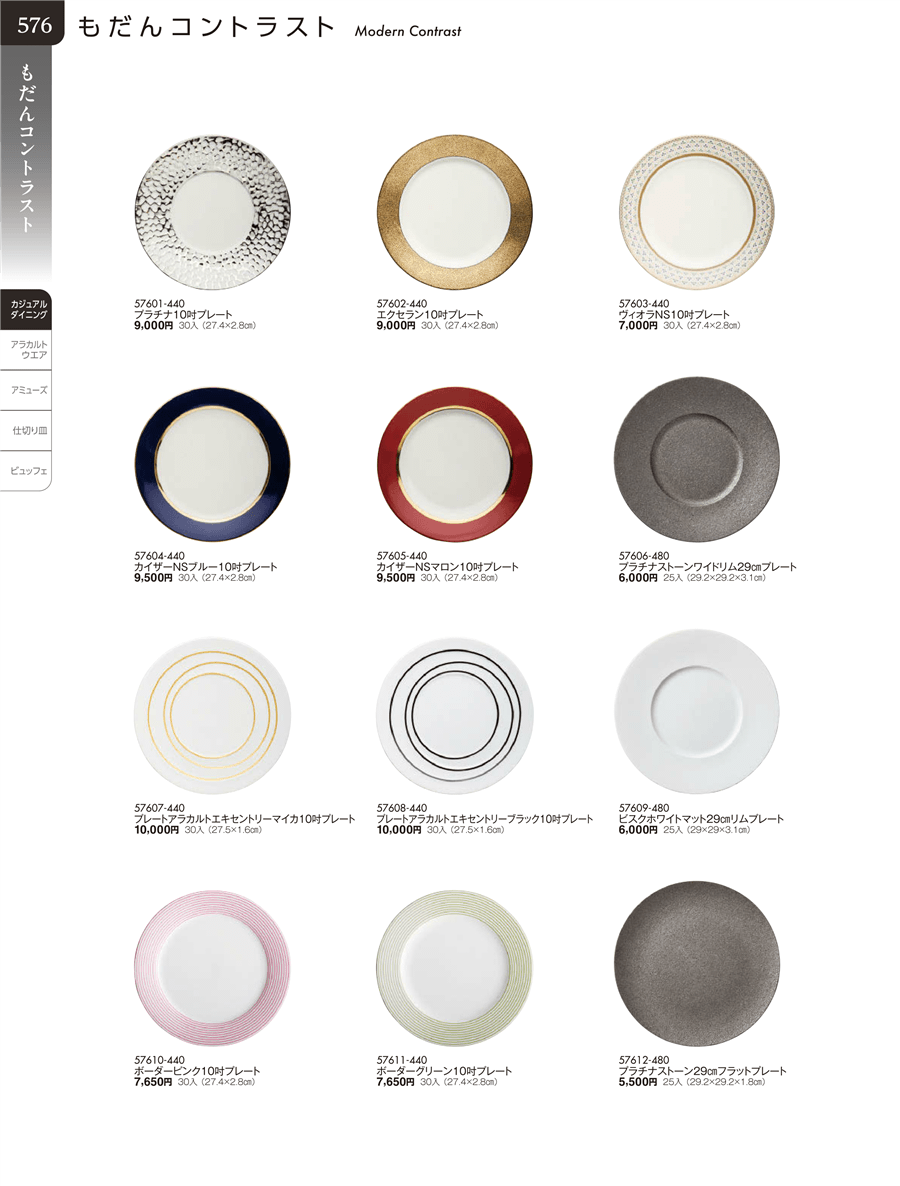 | 57601-440 | プラチナ10吋プレート | 上代 9,000円(税抜) 卸値 4,950円(税抜) (45%OFF) | ||