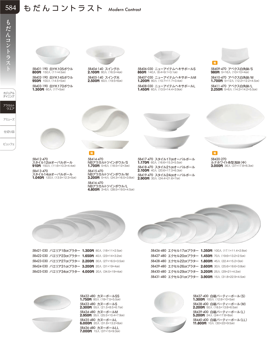 | 58401-190 | 白YK105ボウル | 上代 800円(税抜) 卸値 441円(税抜) (45%OFF) | ||