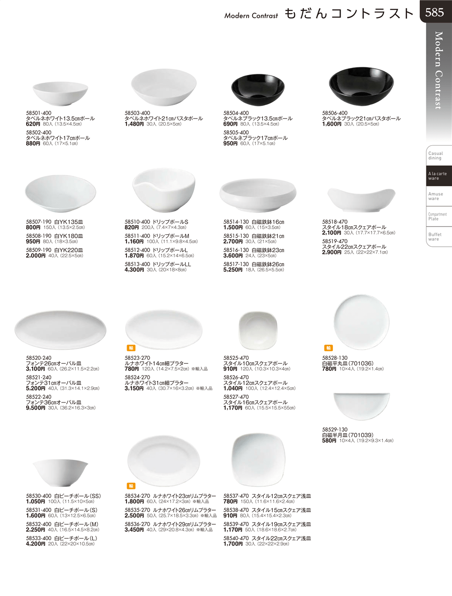 | 58508-190 | 白YK180皿 | 上代 950円(税抜) 卸値 523円(税抜) (45%OFF) | ||