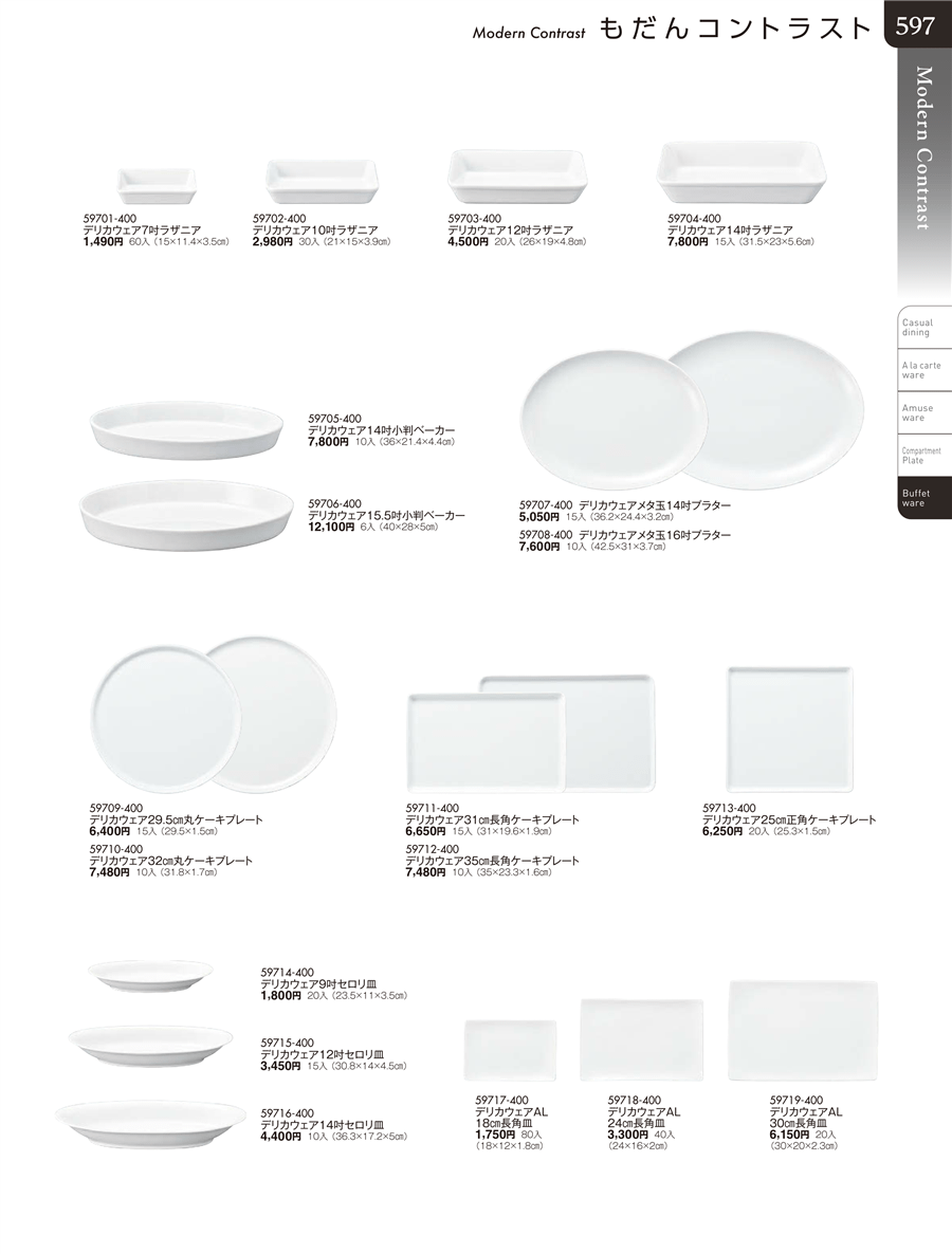 | 59717-400 | デリカウェアAL18㎝長角皿 | 上代 1,750円(税抜) 卸値 963円(税抜) (45%OFF) | ||