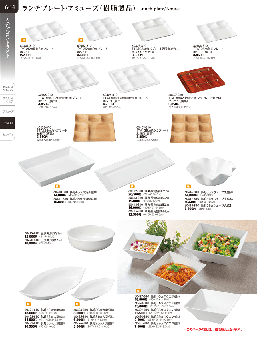 | 60404-810 | [TA]25㎝角1/5プレート ホワイト(裏白) | 上代 3,850円(税抜) 卸値 2,118円(税抜) (45%OFF) | ||