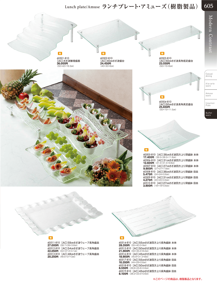 | 60513-810 | [AC]48㎝さざ波ウェーブ長角盛皿 | 上代 20,250円(税抜) 卸値 11,138円(税抜) (45%OFF) | ||