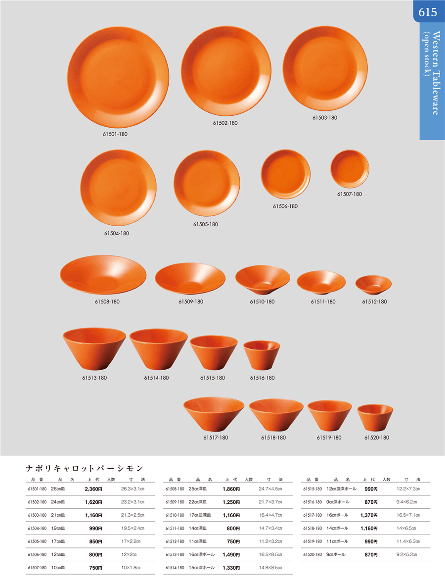| 61514-180 | ナポリキャロットパーシモン 15㎝深ボール | 上代 1,330円(税抜) 卸値 732円(税抜) (45%OFF) | ||