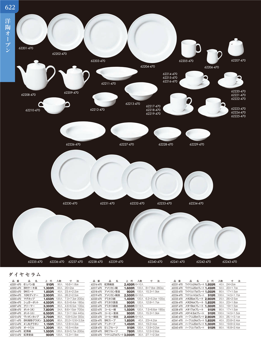 62231-470 | ダイヤセラム ワイドリム24㎝プレート | 上代 1,950円(税抜) 卸値 1,073円(税抜) (45%OFF) | ||