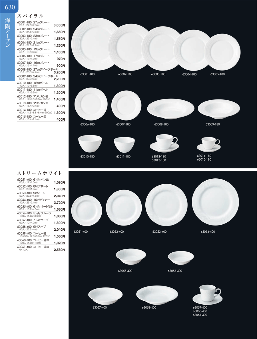 | 63058-400 | ストリームホワイト 9吋スープ | 上代 2,040円(税抜) 卸値 1,122円(税抜) (45%OFF) | ||