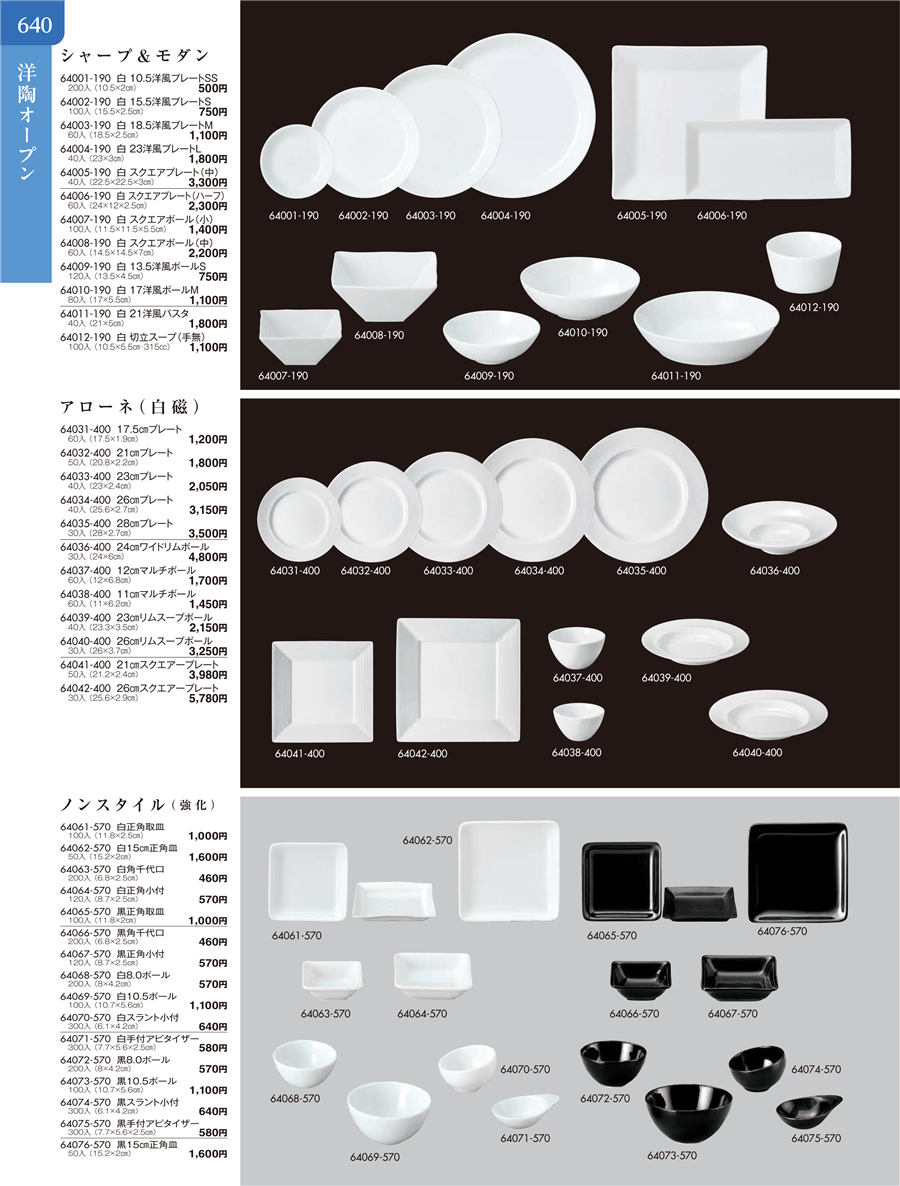 | 64002-190 | シャープ&モダン 白 15.5洋風プレートS | 上代 750円(税抜) 卸値 413円(税抜) (45%OFF) | ||