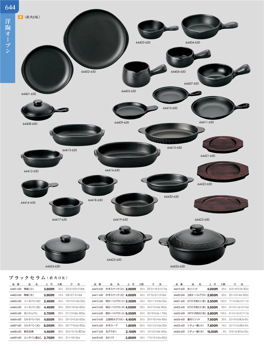 | 64426-650 | ブラックセラム シチュー鍋(大) | 上代 16,000円(税抜) 卸値 8,800円(税抜) (45%OFF) | ||