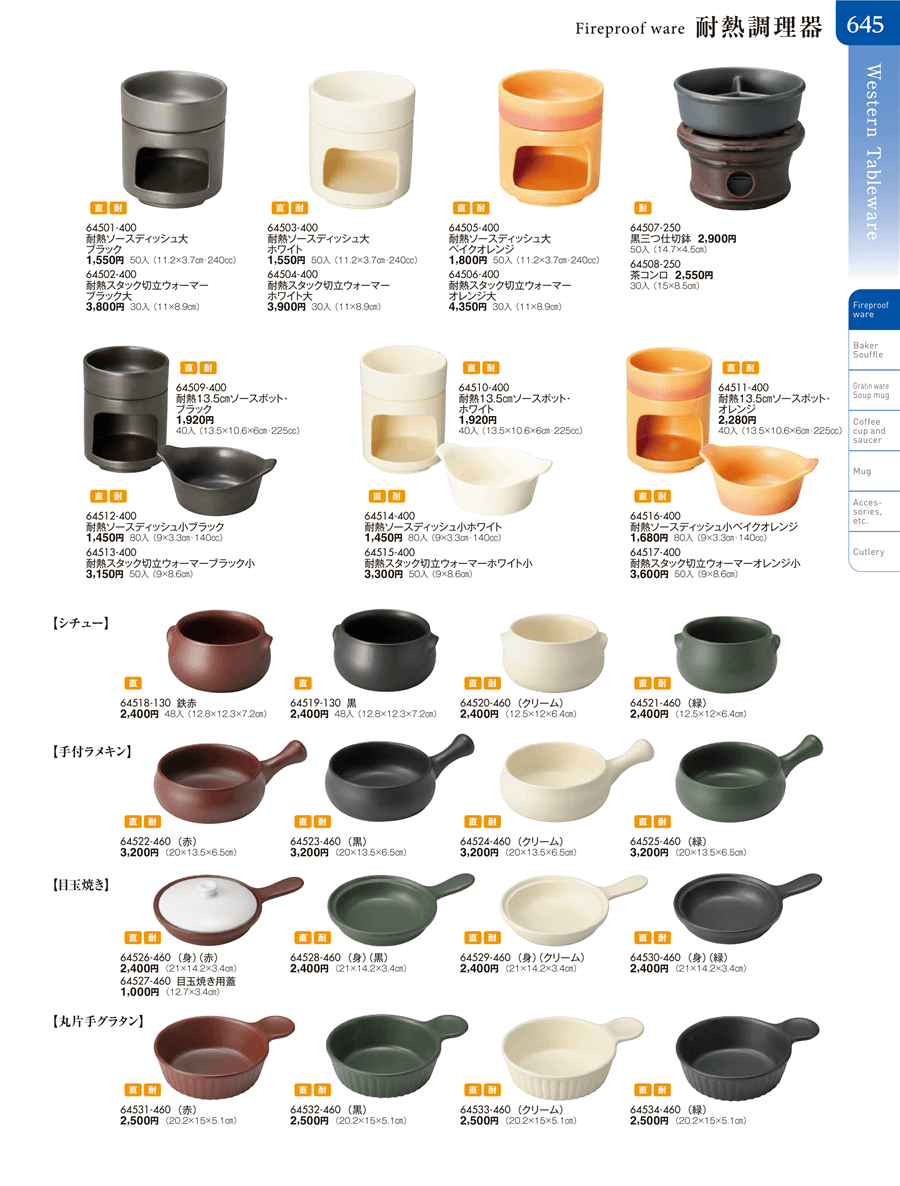 | 64506-400 | 耐熱スタック切立ウォーマーオレンジ大 | 上代 4,350円(税抜) 卸値 2,393円(税抜) (45%OFF) | ||