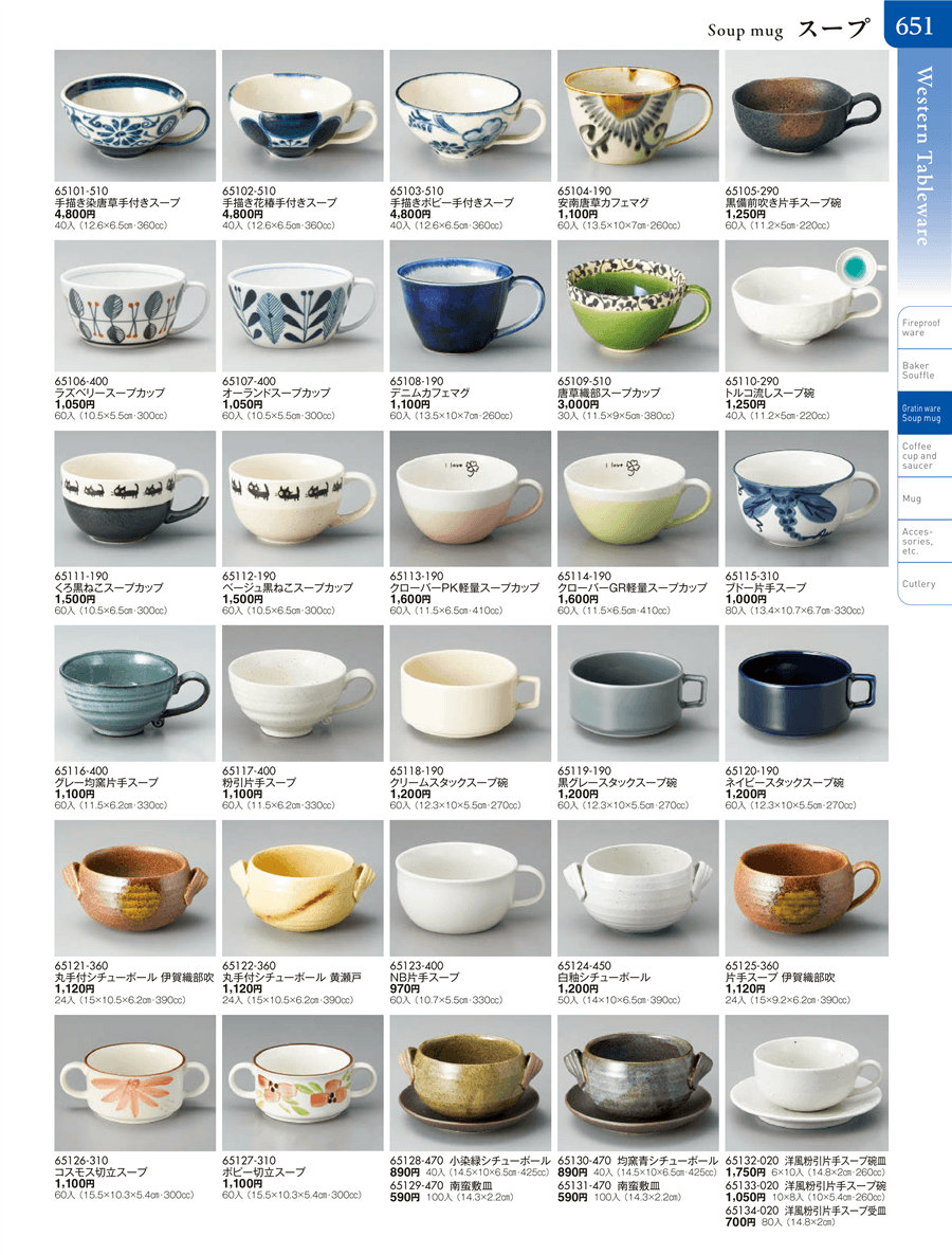 | 65127-310 | ポピー切立スープ | 上代 1,100円(税抜) 卸値 605円(税抜) (45%OFF) | ||