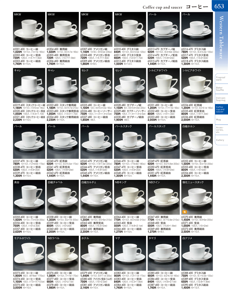 | 65375-450 | モデルホワイトコーヒー碗皿 | 上代 3,000円(税抜) 卸値 1,651円(税抜) (45%OFF) | ||