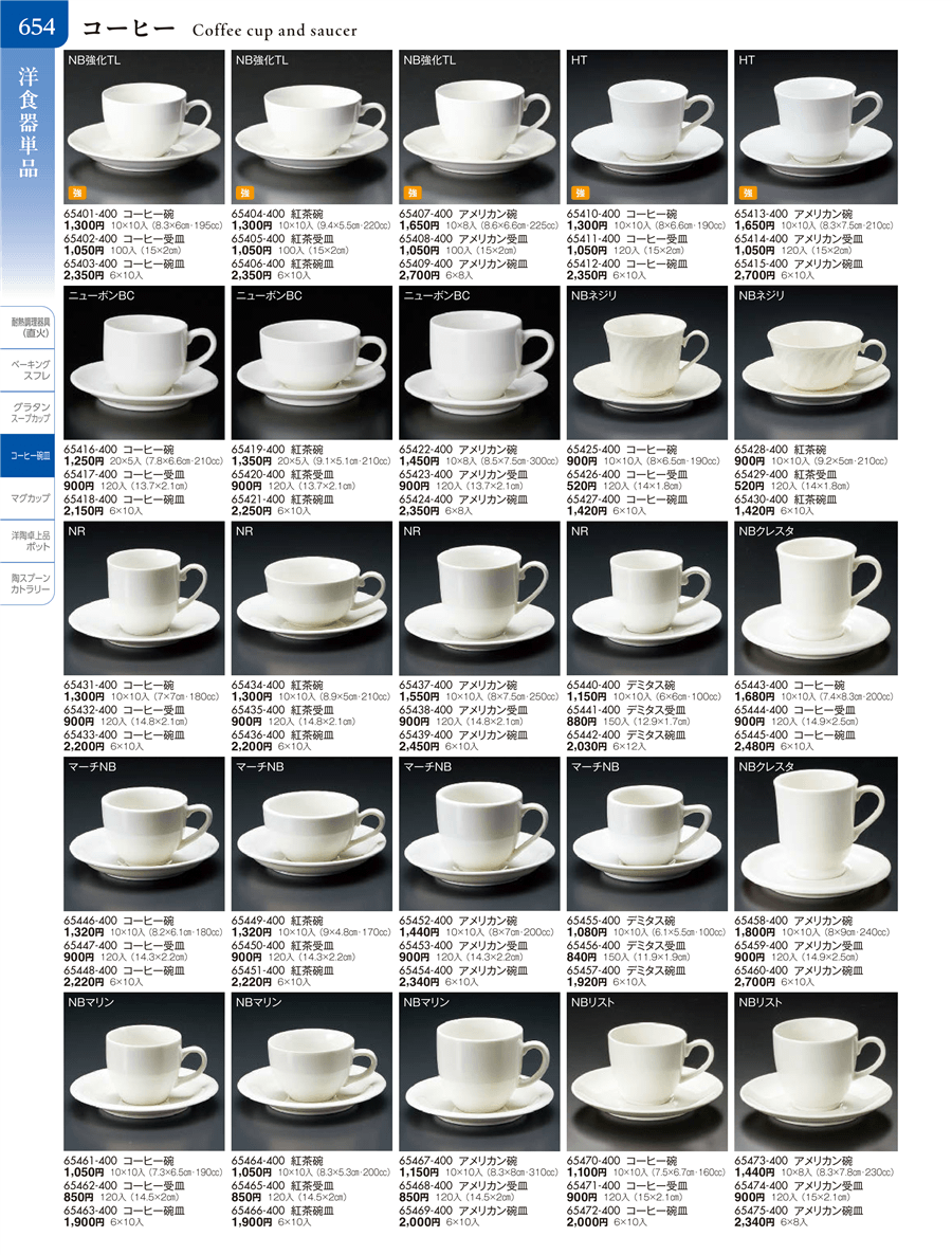 | 65403-400 | NB強化TLコーヒー碗皿 | 上代 2,350円(税抜) 卸値 1,293円(税抜) (45%OFF) | ||