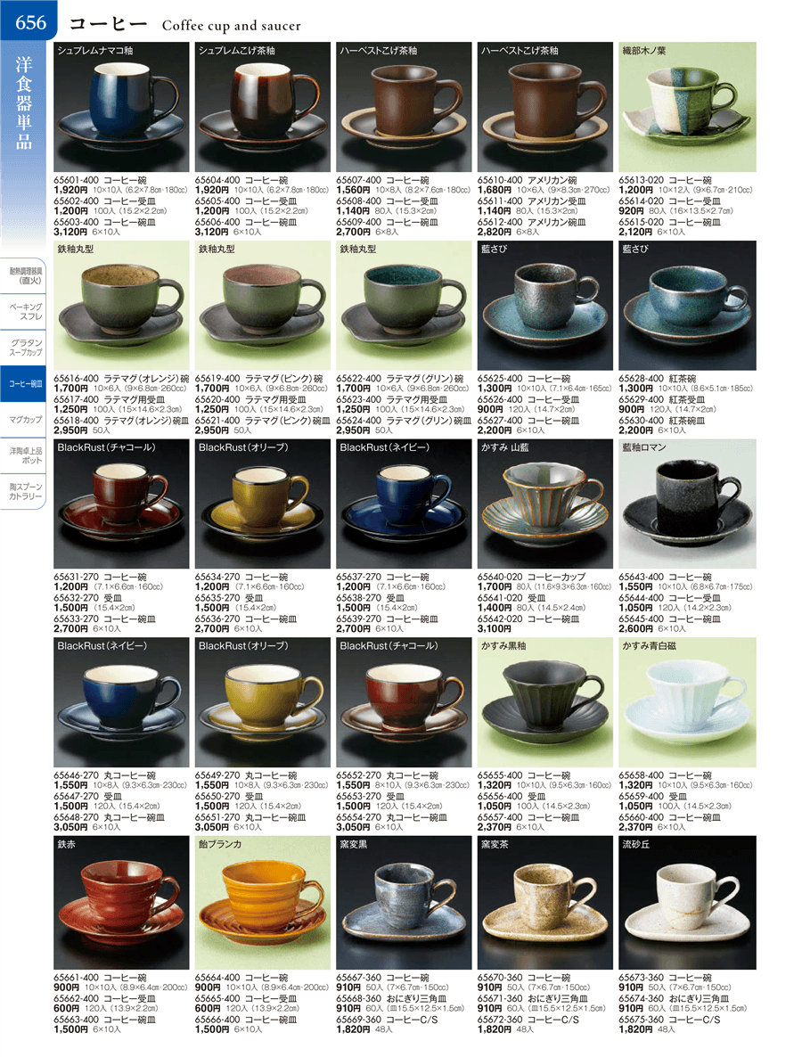 | 65672-360 | 窯変茶コーヒーC/S | 上代 1,820円(税抜) 卸値 1,002円(税抜) (45%OFF) | ||
