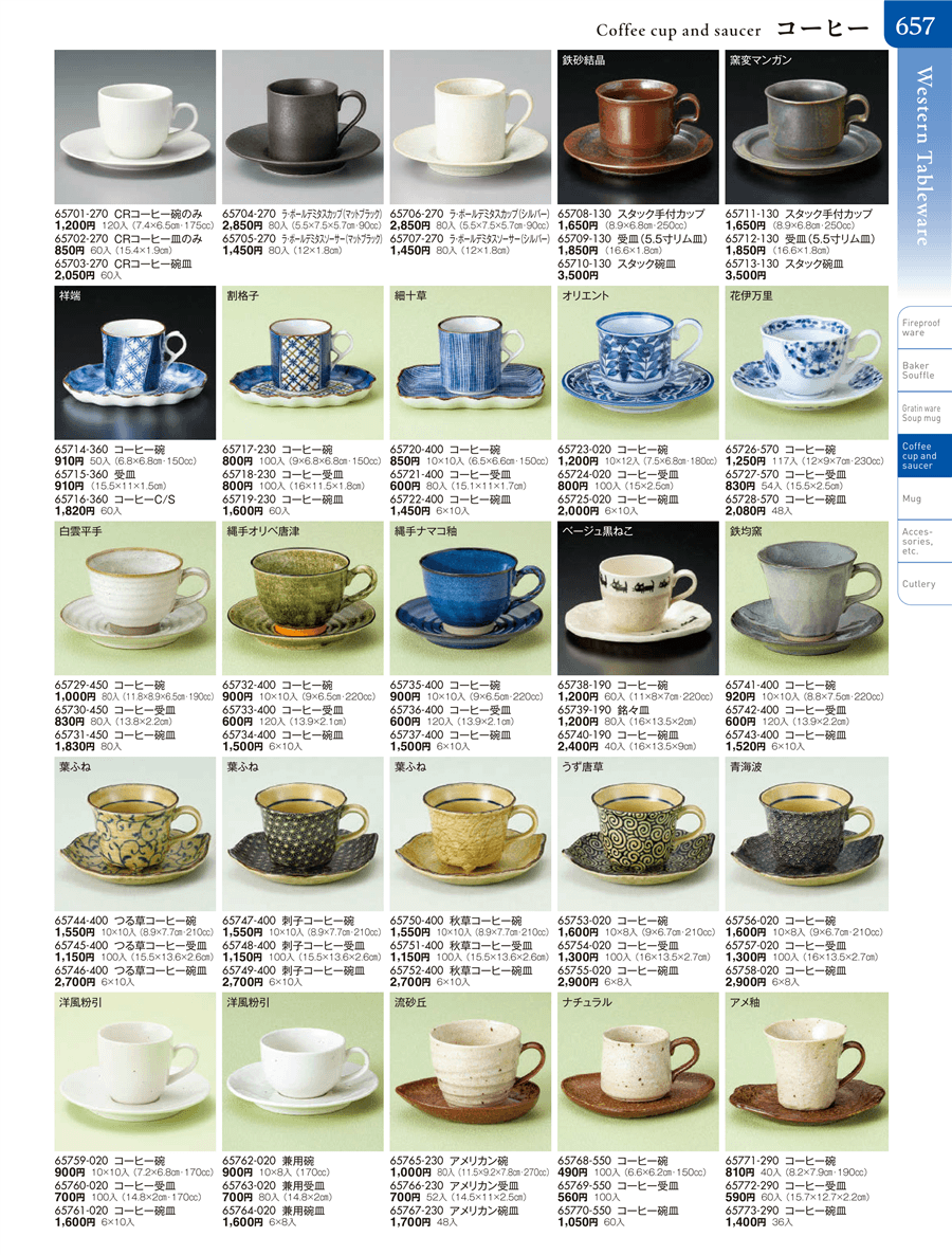 | 65725-020 | オリエントコーヒー碗皿 | 上代 2,000円(税抜) 卸値 1,100円(税抜) (45%OFF) | ||