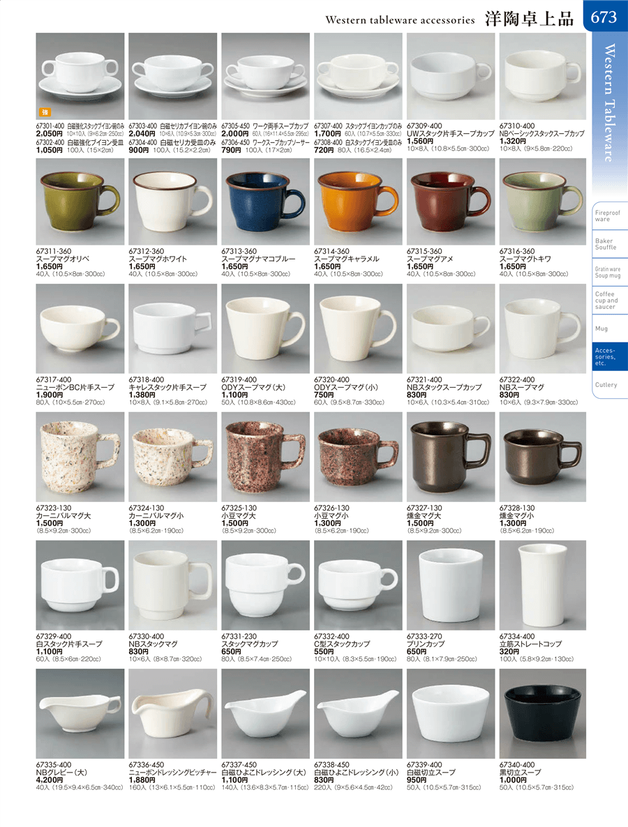 | 67329-400 | 白スタック片手スープ | 上代 1,100円(税抜) 卸値 605円(税抜) (45%OFF) | ||