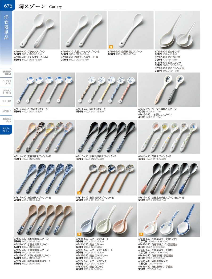 | 67615-450 | 鉄釉呉須柄スプーンA~E | 上代 480円(税抜) 卸値 264円(税抜) (45%OFF) | ||
