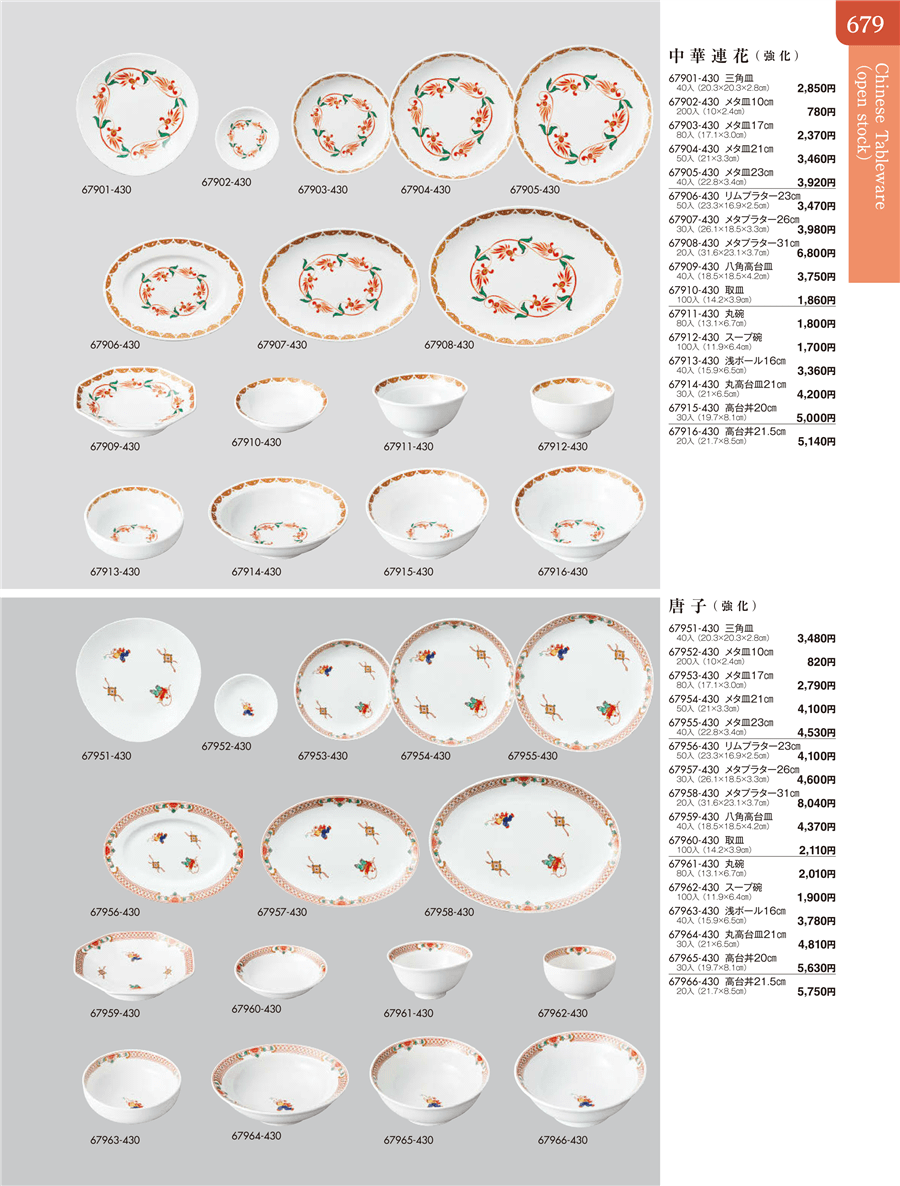 | 67914-430 | 中華連花 丸高台皿21㎝ | 上代 4,200円(税抜) 卸値 2,310円(税抜) (45%OFF) | ||