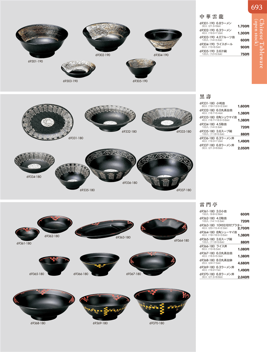 | 69305-190 | 中華雲龍 3.6汁碗 | 上代 750円(税抜) 卸値 413円(税抜) (45%OFF) | ||