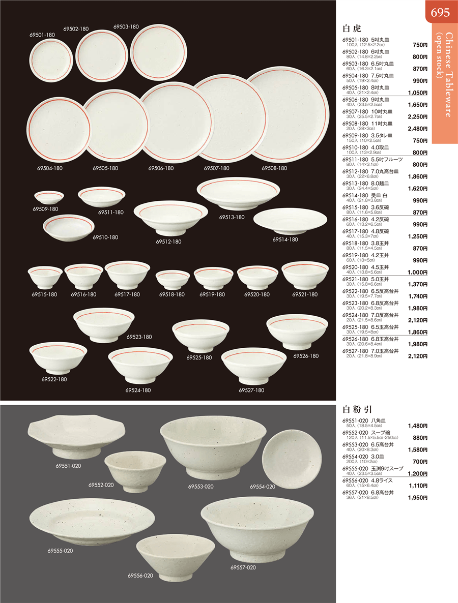 | 69525-180 | 白虎 6.5玉高台丼 | 上代 1,860円(税抜) 卸値 1,024円(税抜) (45%OFF) | ||