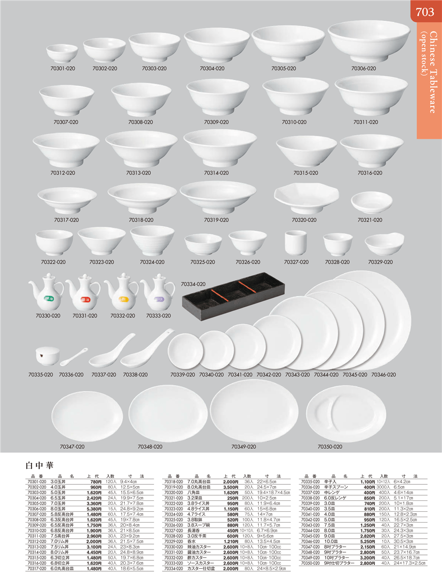 | 70339-020 | 白中華 3.0皿 | 上代 740円(税抜) 卸値 408円(税抜) (45%OFF) | ||
