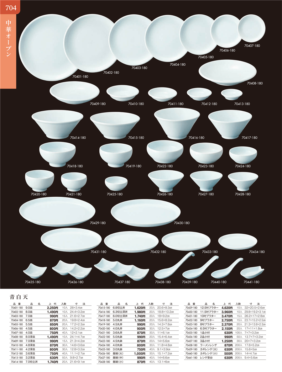 | 70401-180 | 青白天 9.0皿 | 上代 2,250円(税抜) 卸値 1,238円(税抜) (45%OFF) | ||