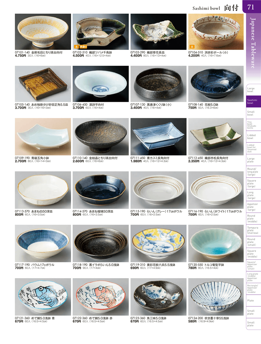 | 07123-360 | 魚三昧5.0浅鉢 | 上代 670円(税抜) 卸値 369円(税抜) (45%OFF) | ||