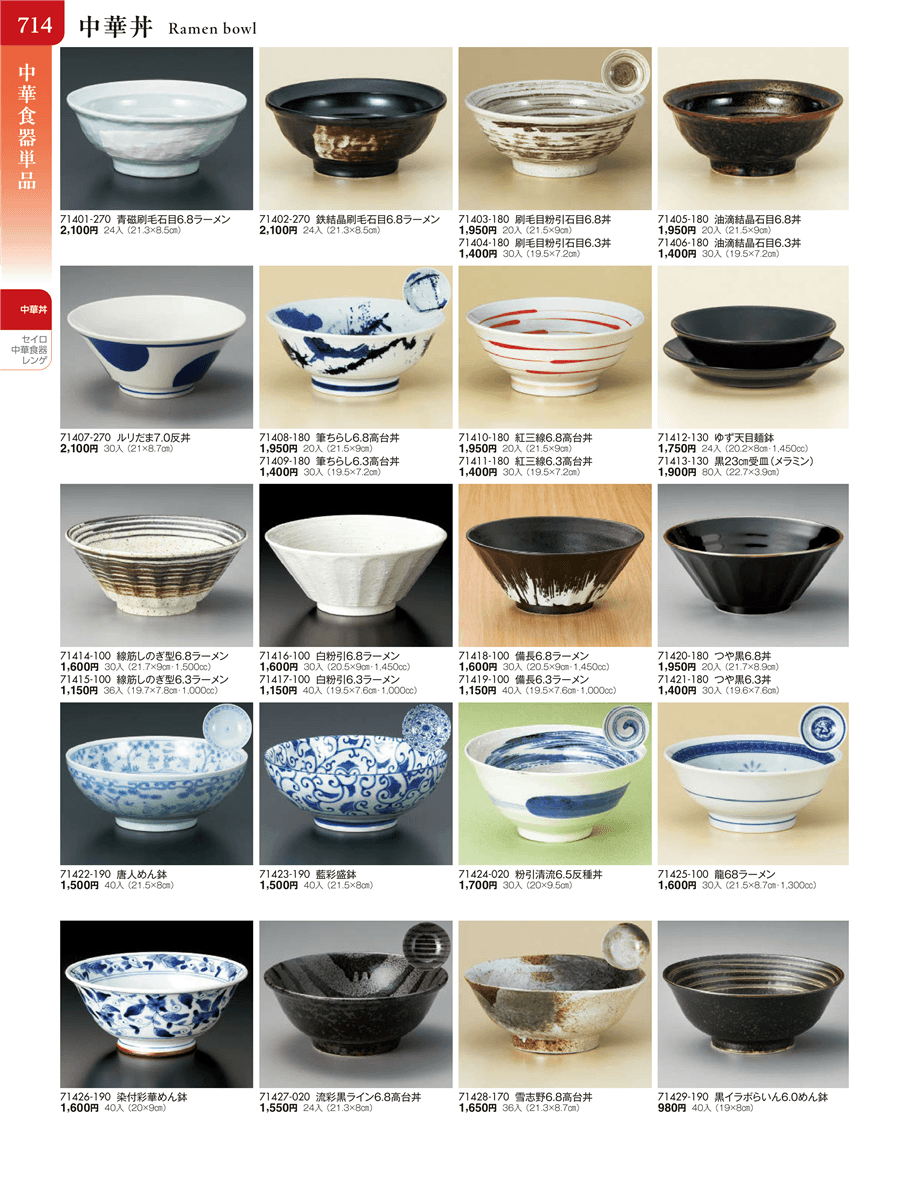 | 71416-100 | 白粉引6.8ラーメン | 上代 1,600円(税抜) 卸値 881円(税抜) (45%OFF) | ||