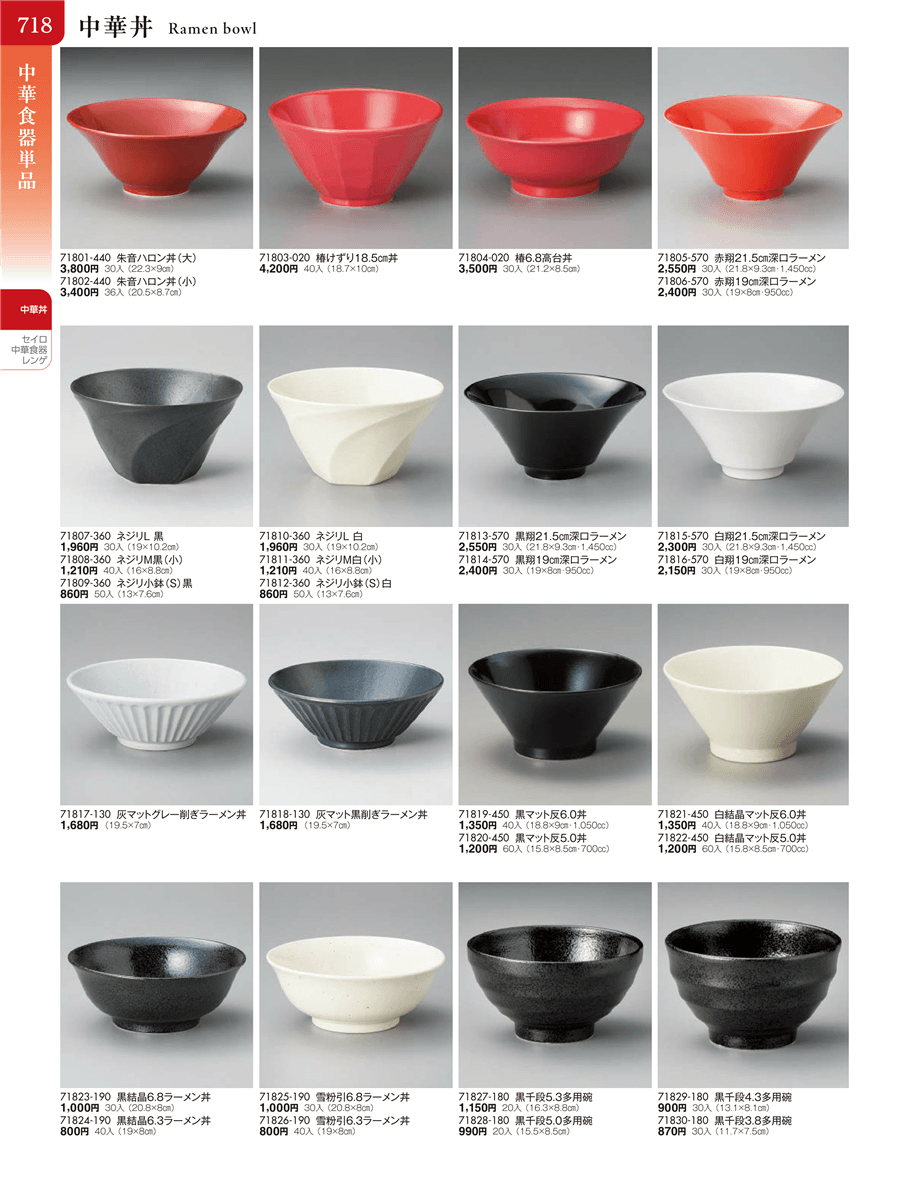 | 71818-130 | 灰マット黒削ぎラーメン丼 | 上代 1,680円(税抜) 卸値 925円(税抜) (45%OFF) | ||