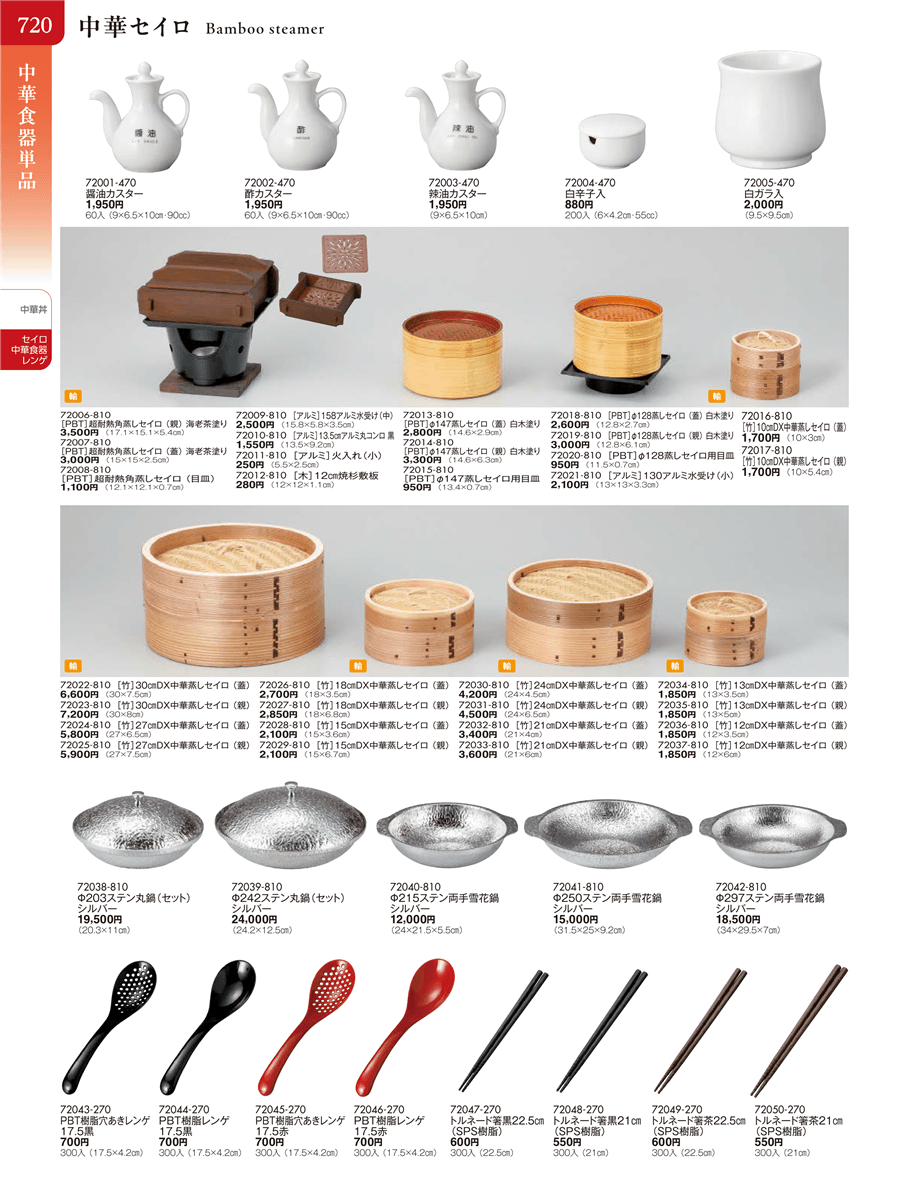 | 72033-810 | [竹]21㎝DX中華蒸しセイロ (親) | 上代 3,600円(税抜) 卸値 1,981円(税抜) (45%OFF) | ||