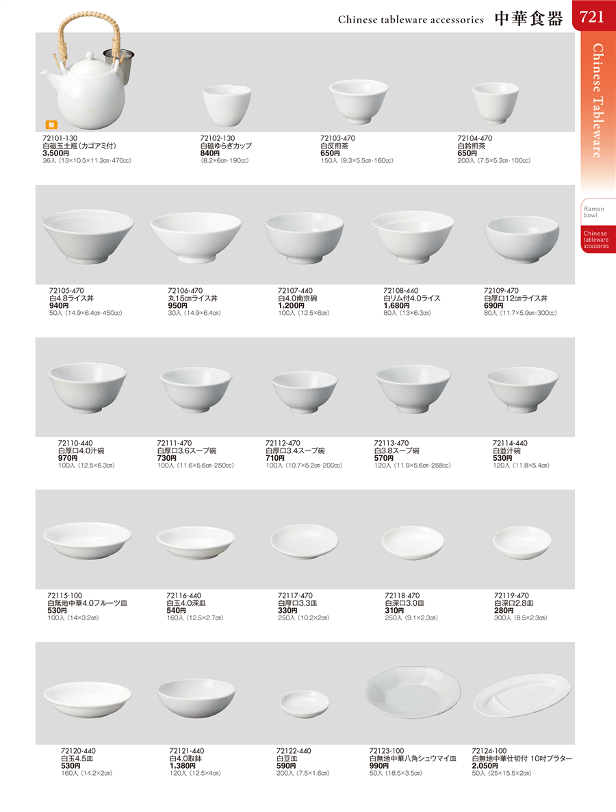 | 72107-440 | 白4.0南京碗 | 上代 1,200円(税抜) 卸値 660円(税抜) (45%OFF) | ||