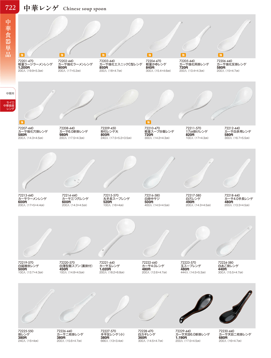 | 72210-470 | 軽量スープ炒飯レンゲ | 上代 720円(税抜) 卸値 397円(税抜) (45%OFF) | ||