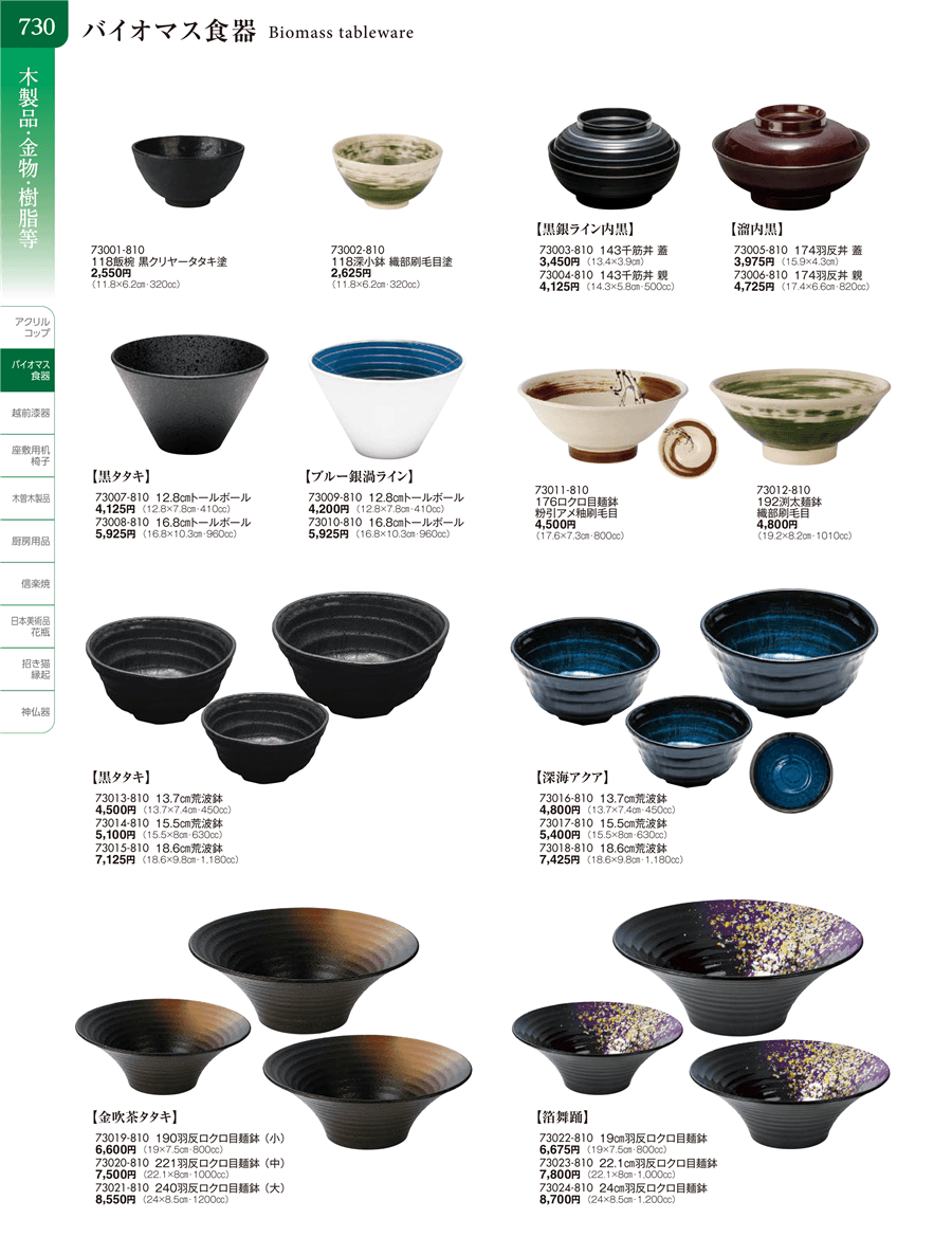 | 73005-810 | 溜内黒174羽反丼 蓋 | 上代 3,975円(税抜) 卸値 2,187円(税抜) (45%OFF) | ||