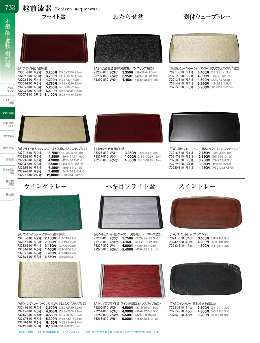 | 73249-810 | [A]ウィングトレー シャンパンGアクアSL(ノンスリップ加工)尺8寸 | 上代 8,150円(税抜) 卸値 4,483円(税抜) (45%OFF) | ||