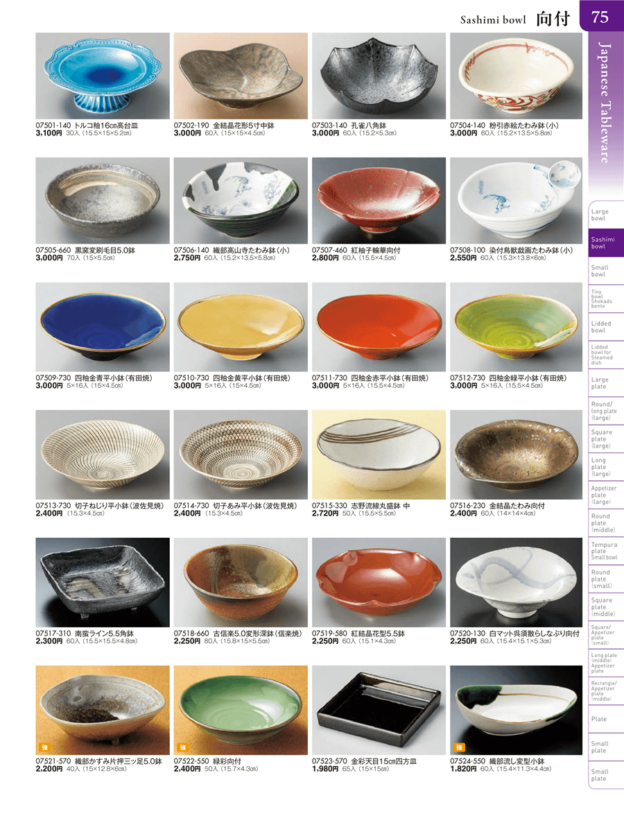 | 07510-730 | 四釉金黄平小鉢(有田焼) | 上代 3,000円(税抜) 卸値 1,651円(税抜) (45%OFF) | ||