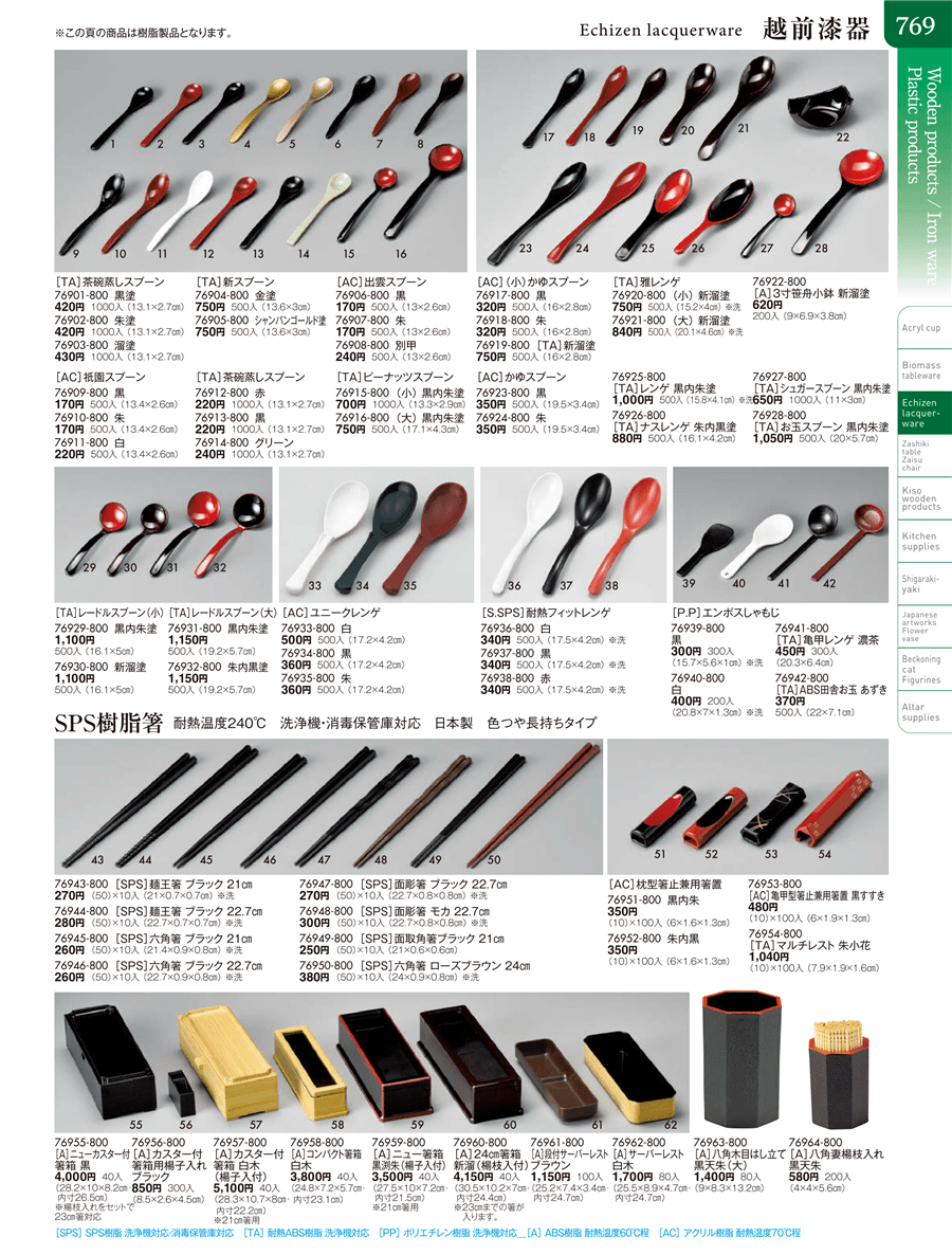 | 76903-800 | [TA]茶碗蒸しスプーン溜塗 | 上代 430円(税抜) 卸値 237円(税抜) (45%OFF) | ||