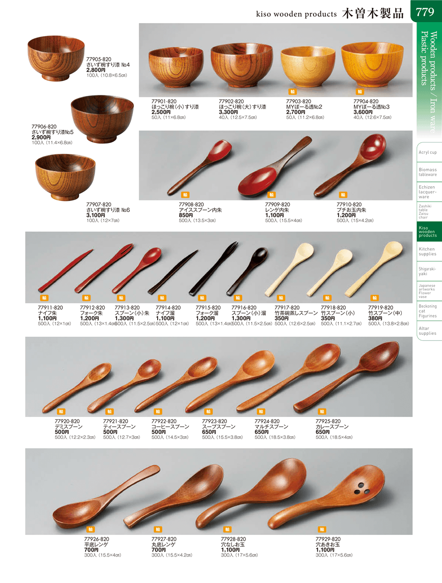 | 77907-820 | さいず椀すり漆 №6 | 上代 3,100円(税抜) 卸値 1,706円(税抜) (45%OFF) | ||