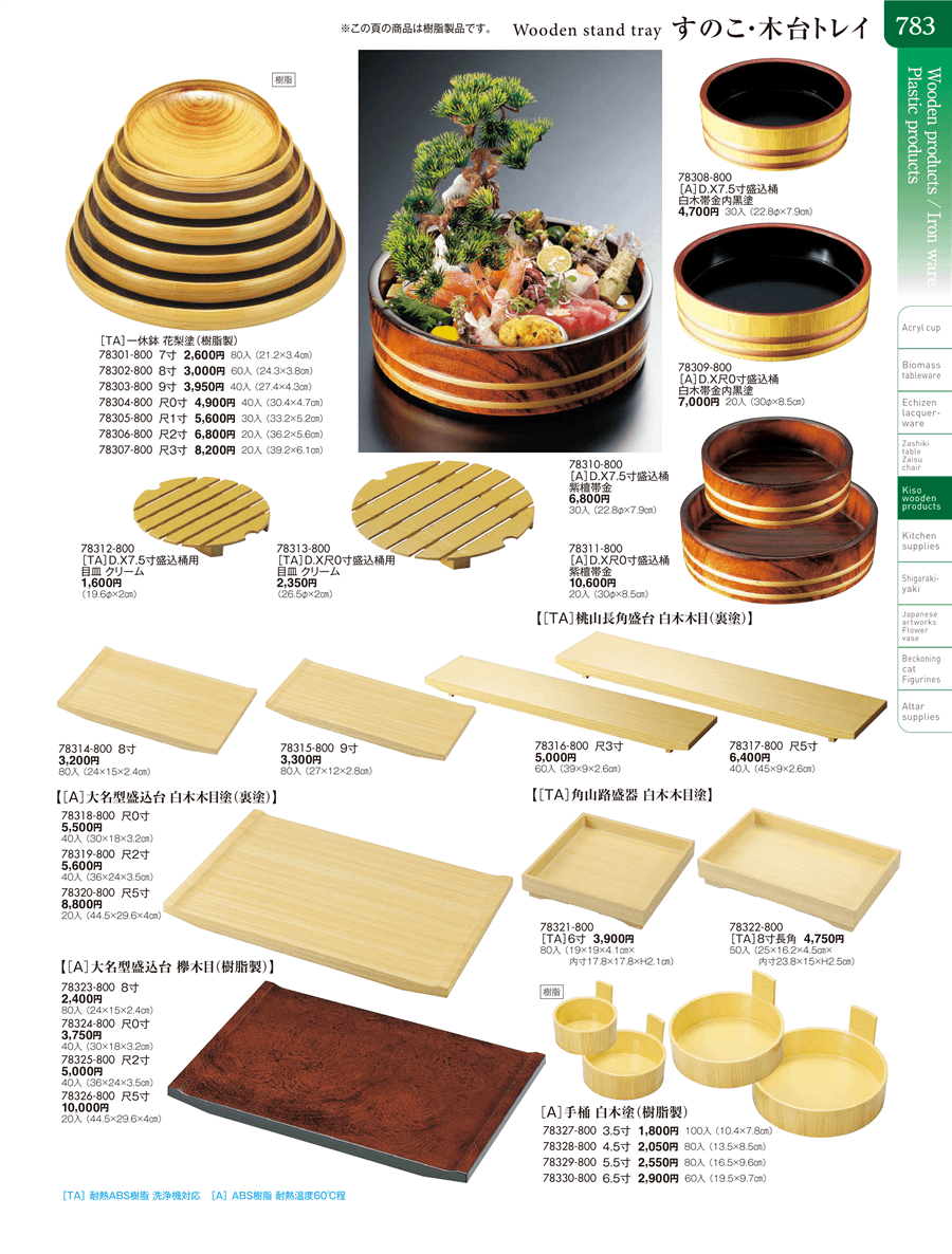 | 78324-800 | [A]大名型盛込台 欅木目(樹脂製)尺0寸 | 上代 3,750円(税抜) 卸値 2,063円(税抜) (45%OFF) | ||
