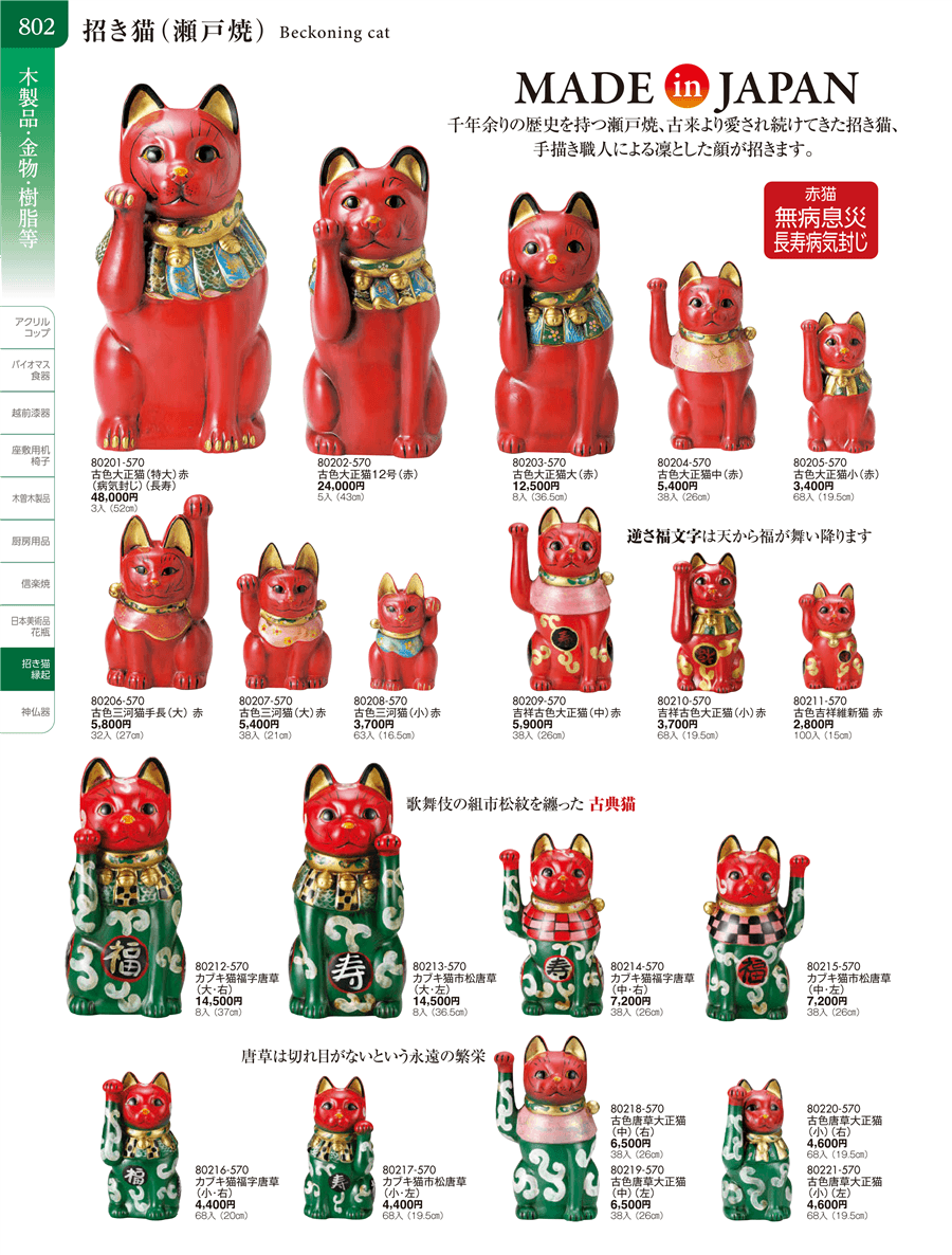 | 80201-570 | 古色大正猫(特大)赤(病気封じ)(長寿) | 上代 48,000円(税抜) 卸値 26,401円(税抜) (45%OFF) | ||