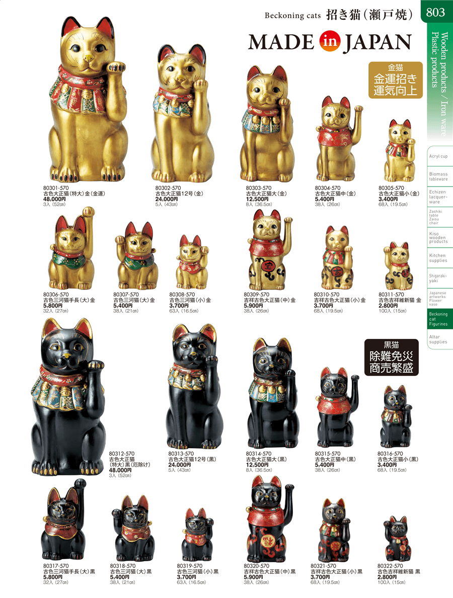 | 80322-570 | 古色吉祥維新猫 黒 | 上代 2,800円(税抜) 卸値 1,541円(税抜) (45%OFF) | ||