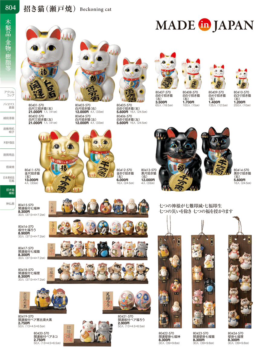 | 80417-570 | 開運板付七福猫 | 上代 8,300円(税抜) 卸値 4,565円(税抜) (45%OFF) | ||