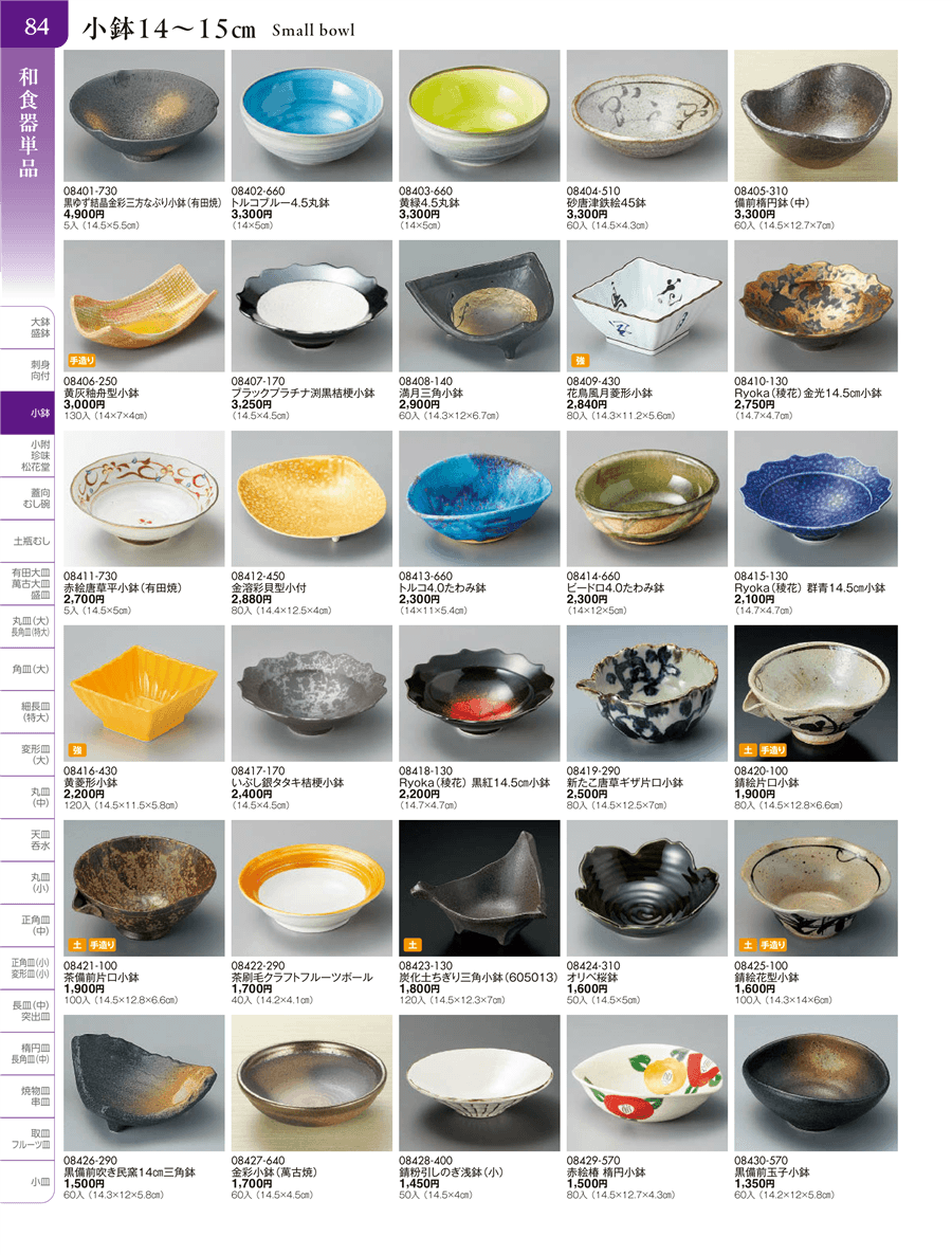 | 08420-100 | 錆絵片口小鉢 | 上代 1,900円(税抜) 卸値 1,045円(税抜) (45%OFF) | ||